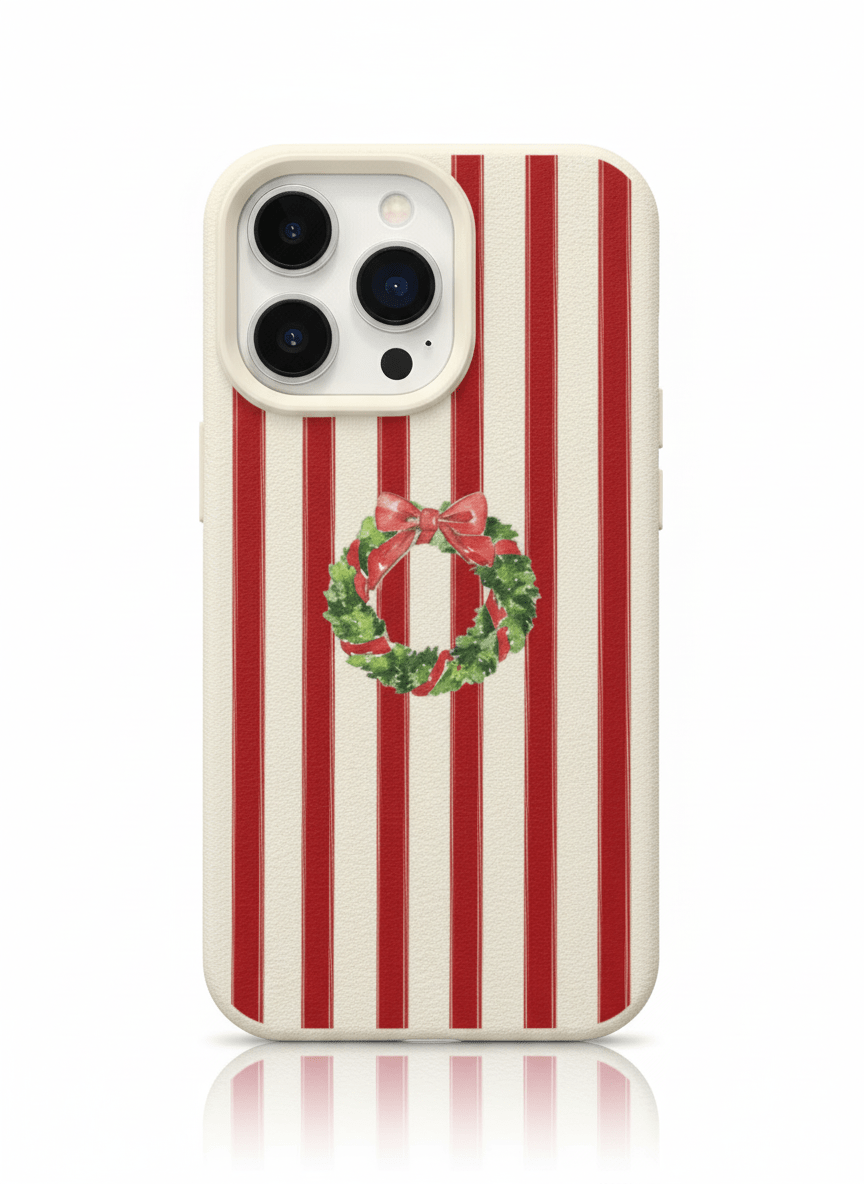 Proteja seu iPhone com estilo nesta época de festas com nossa capa natalina vermelha. Feita com textura lychee e guirlanda decorativa, essa capa combina design festivo com proteção elegante para o seu dispositivo.